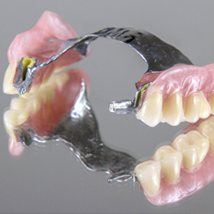 The denture supplied with a so-called slider is more aesthetical then the clips. In this case the metal part is invisible at the teeth.